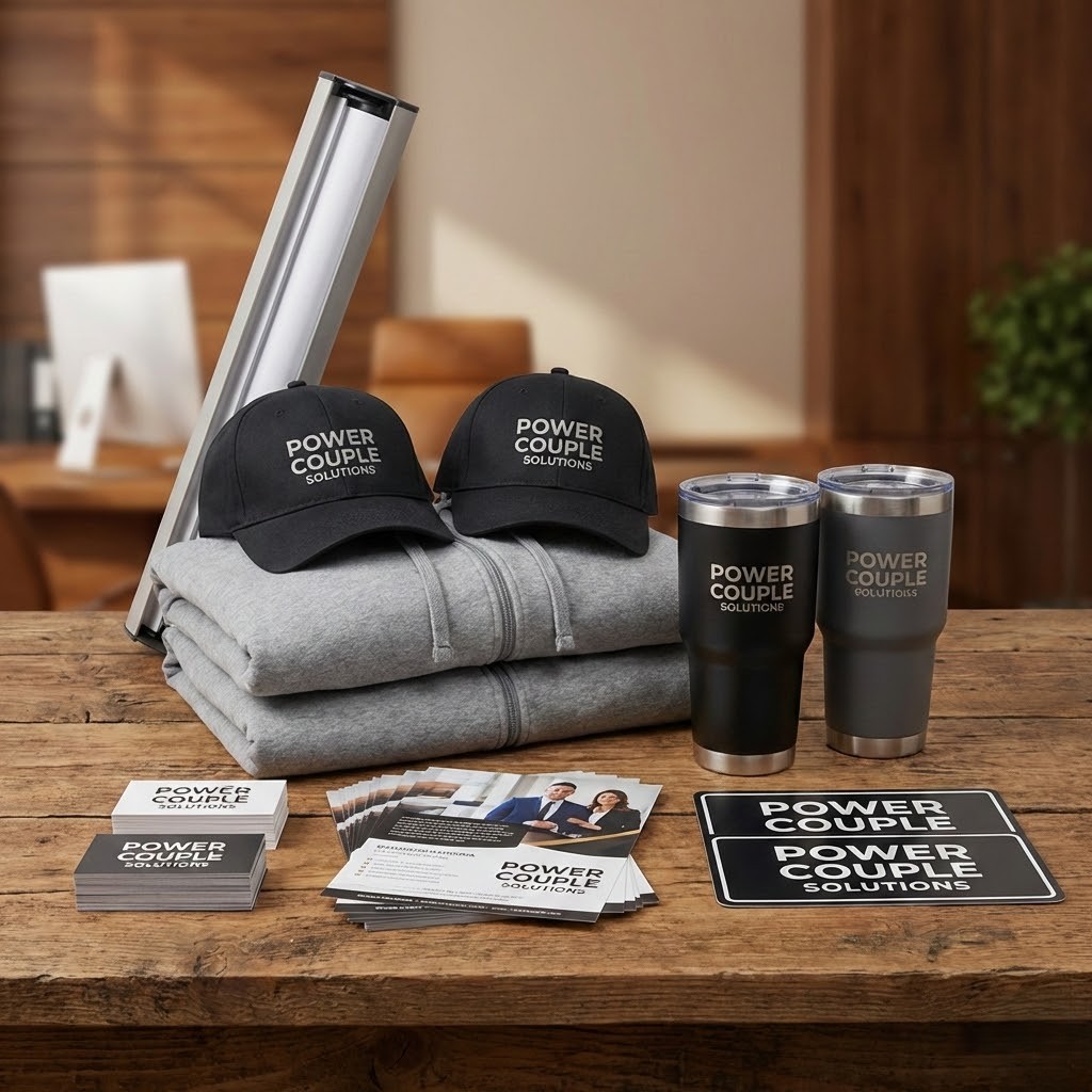 This bundle combines high-quality printed marketing materials with branded apparel and promotional items, giving your business visibility across multiple touchpoints. Whether you’re promoting your brand at events, in-store, on the road, or within your team, this bundle delivers consistency and credibility.